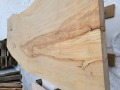 細かく波立つような模様の縮杢(ちぢみもく)など個性豊かな杢目は美しく一つひとつ違った表情を楽しめる一枚板です。また、一定ではないからこその豊かな色合いなどトチノキの個性を存分に味わえることができます。 テーブル天板や書斎兼学習机カウンター、洗面台、手洗い天板など用途多彩に活用できる一枚板です。店舗では自然な形状のトチノキ一枚板により話題性が高くなり、認知度イメージアップにもなるのではないでしょうか。 写真4・6・8枚目は水拭きして木目を際立たせた自然塗料時のイメージとなります。