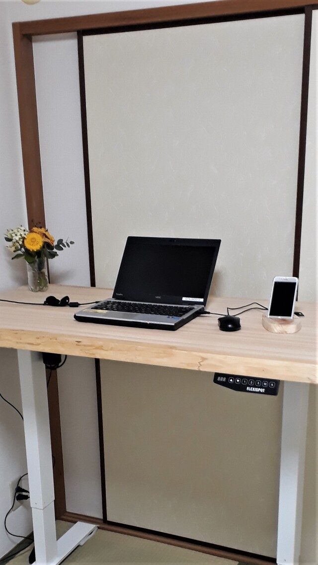 電動昇降式脚のパソコンデスク